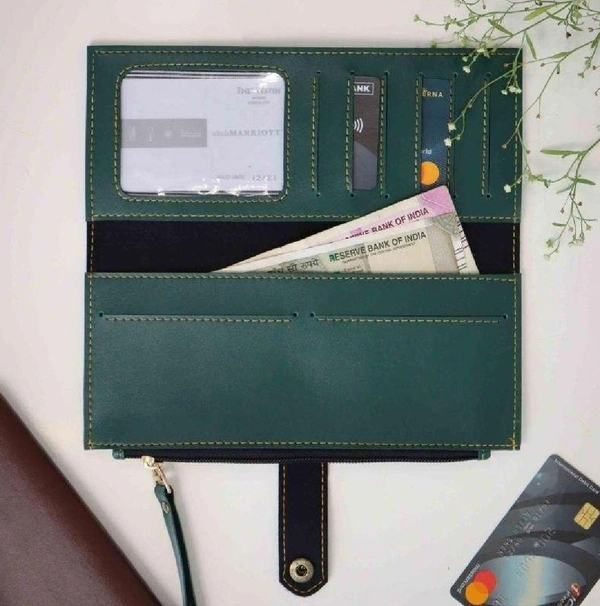 • 2 Fold Ladies button Wallet 5 Card slots + 2 separate Zipper Cash slots
