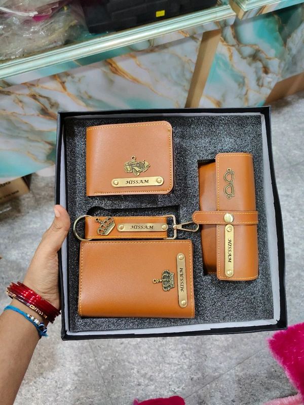 - 1 Name upto 10 Letters engraved on the Name Strip for Wallet, Sunglass Pouch, Passport Cover and Key Chain